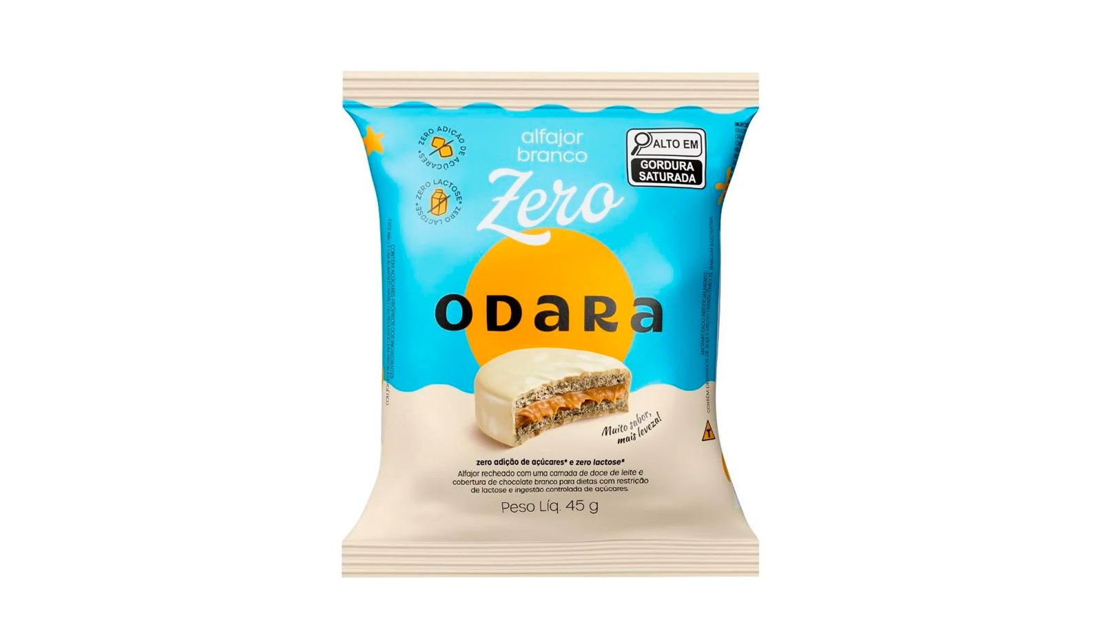 alfajor odara 45g chocolate branco zero